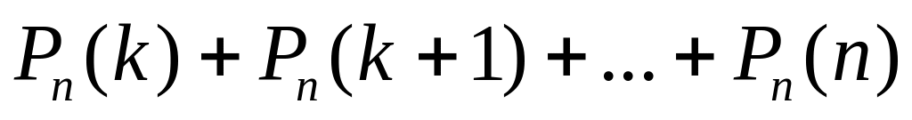 Вероятность того, что в n испытаниях событие А произойдет не менее k раз можно найти используя теорему сложения вероятностей и формулу Бернулли: