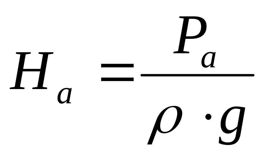 где Pa – минимально возможное атмосферное давление, Па; – плотность нефтепродукта, кг/м3; g – ускорение свободного падения, м/с2.