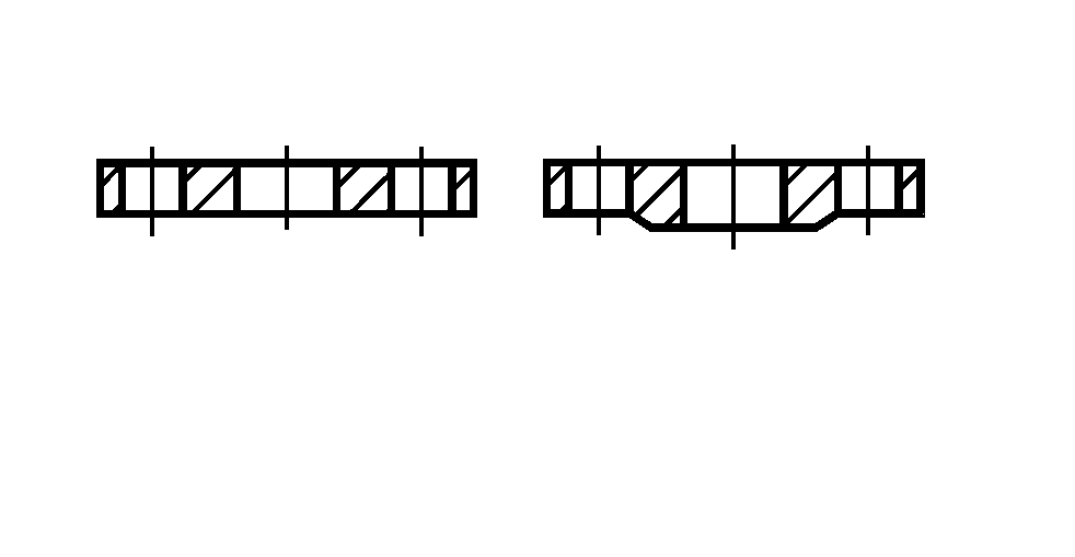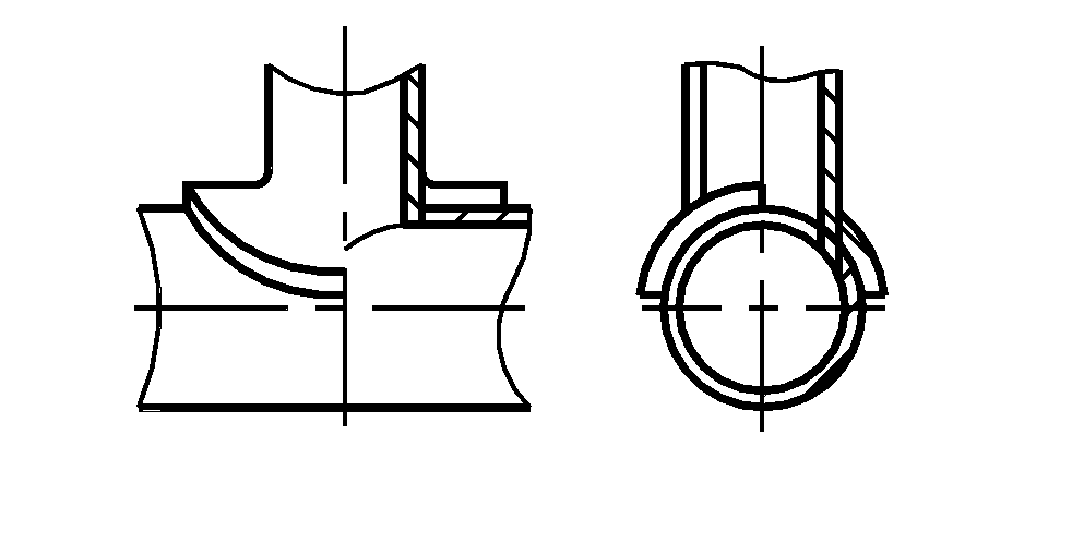 Равнопроходные сварные ответвления, в которых наблюдается наибольшее снижение прочности трубопровода, получают путем врезки без укрепляющих элементов (рис. 7.6.а). Такие ответвления Ду до 400 мм применяют обычно на Ру до 1,6 МПа.