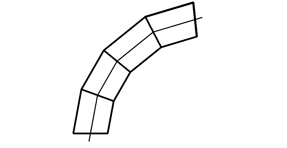 Сварные (секционные) отводы (рис. 7.5.в) изготовляют Ду 1501400 мм из бесшовных и электросварных труб путем вырезки отдельных секций и их последующей сборки и сварки. Радиус изгиба сварных отводов обычно небольшой, равный (11,5) Ду. Применяют отводы для трубопроводов на Ру до 6,3 МПа и только в тех случаях, когда отсутствуют круто изогнутые или гнутые отводы. Для трубопроводов пара и горячей воды, контролируемых Гостехнадзором, сварные отводы применяют только для трубопроводов III к IV категорий.