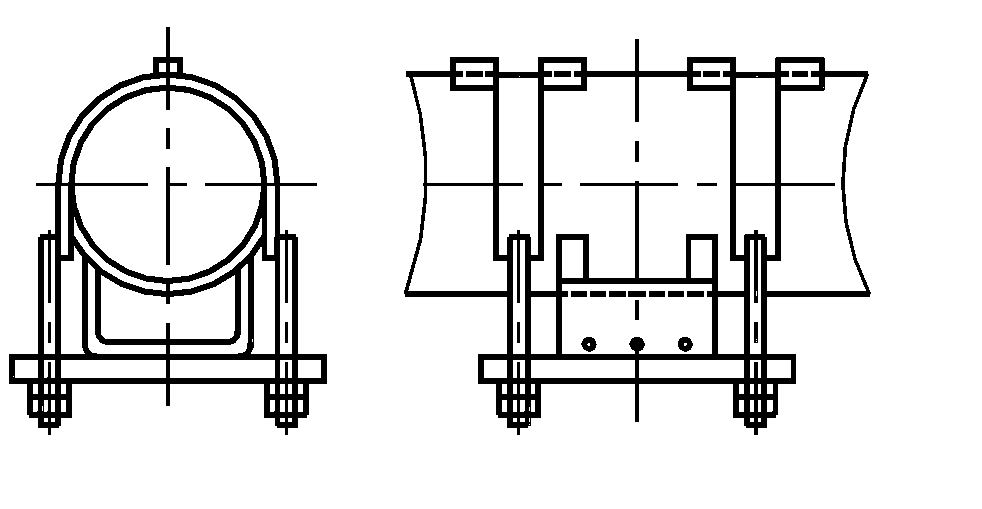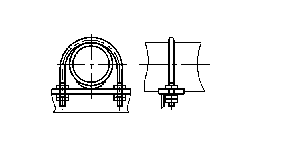 Неподвижные опоры (рис. 7.9.) должны жестко удерживать участок трубопровода и не допускать его перемещения относительно поддерживающих конструкций. Такие опоры воспринимают вертикальные