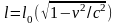 Таяқша ұзындығына параллель жылдамдықпен қозғалғанда бақылаушыға қарағанда оның ұзындығы неге тең? l0-таяқшаның меншiктi ұзындығы. |