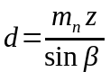 По какой формуле рассчитывается делительный диаметр прямозубого колеса, с числом зубьев z и окружным модулем m-d=mz