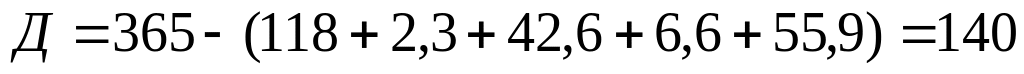 После нахождения всех неизвестных значений в формуле 1.1, находим количество дней работы машин в году для каждой машины.