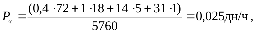 Количество дней нахождения машин на техническом обслуживании и в ремонте в расчете на 1 ч сменного рабочего времени машины определяется по формуле:
