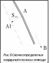 Граница полосы отвода определенна как расстояние от оси автомобильной дороги. Прохождение оси железной дороги в свою очередь определенно координатами поворотных точек оси автомобильной дороги А и В. Для определения координат поворотных точек прохождения полосы отвода (А1, В1) необходимо выполнить следующие действия (рис.6):