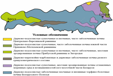 Почвенно-экологическое районирование основывается преимущественно на свойствах почвенного покрова по отношению к эрозии – основному фактору потенциальной деградации и экологической неустойчивости почв в условиях Беларуси. В основу районирования положены сведения о почвах, полученные в результате корректировки почвенных обследований. Главный критерий – характер почвенного покрова с учетом геоморфологии, литологии, агротехнологического состояния земель и пригодности для возделывания различных полевых культур.