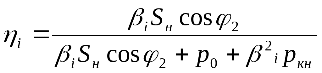 Величину КПД трансформатора при заданном значении загрузки по току βi = Ii/Iн определяют методом отдельных потерь по формуле