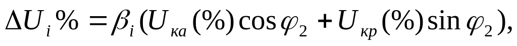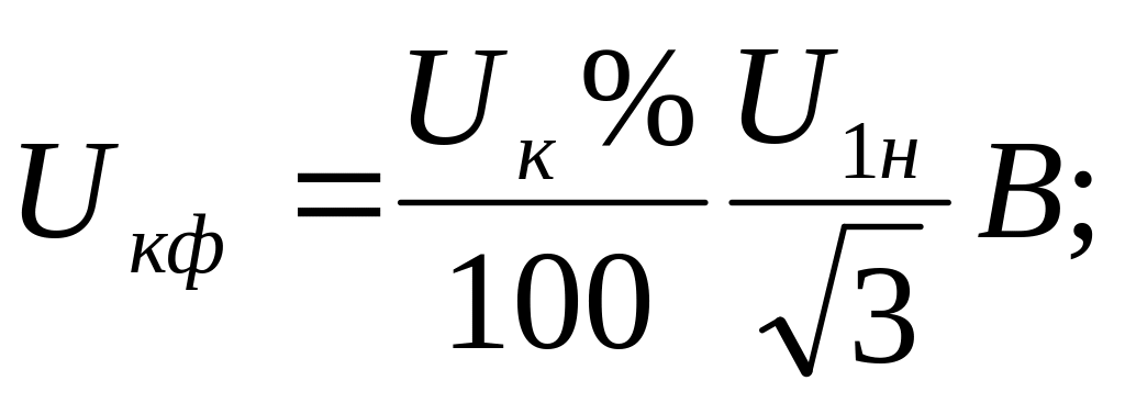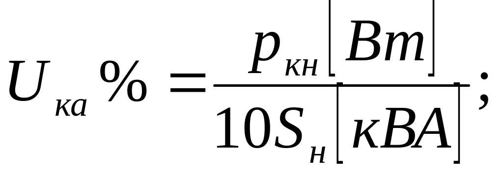 где Uка, Uкр соответственно значения падения напряжения на активном и индуктивном сопротивлении короткого замыкания трансформатора, которые определяют из соотношений