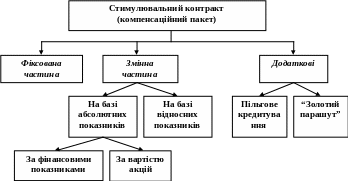 У більшості зарубіжних компаній з метою стимулювання топ-менеджменту використовують стимулювальний контракт (іncentіve contract)21. Такий контракт відображає склад компенсаційного пакета керівників вищої ланки управління компанією та, як правило, має дві основні частини – фіксовану та змінну (рис. 11.4).