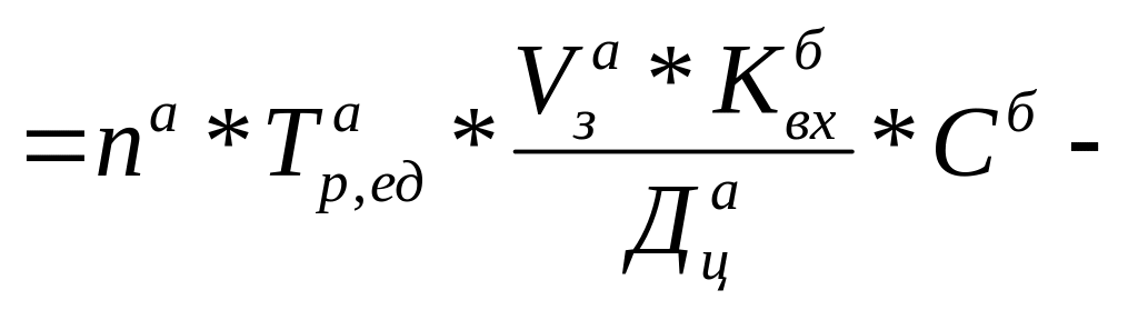 Для розробки формул розрахунку впливу простоїв одиниці обладнання в зв’язку з різними причинами на вартість продукції (В):