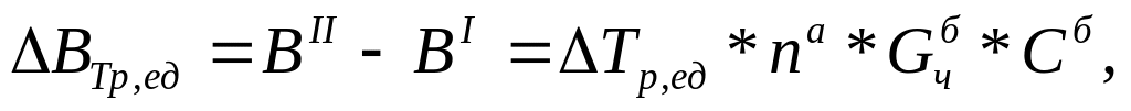 Для розробки формули розрахунку впливу кількості основного обладнання (n), фонду часу його роботи за рік (Тр,ед) і продуктивності одиниці обладнання за годину (Gч) на вартість продукції (В):