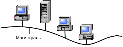 Рисунок 1.6. Сеть с топологией «шина»