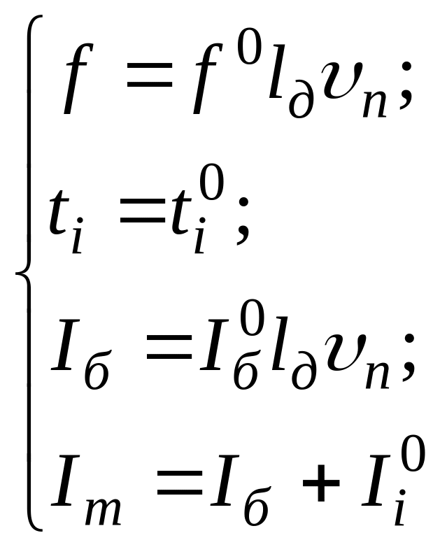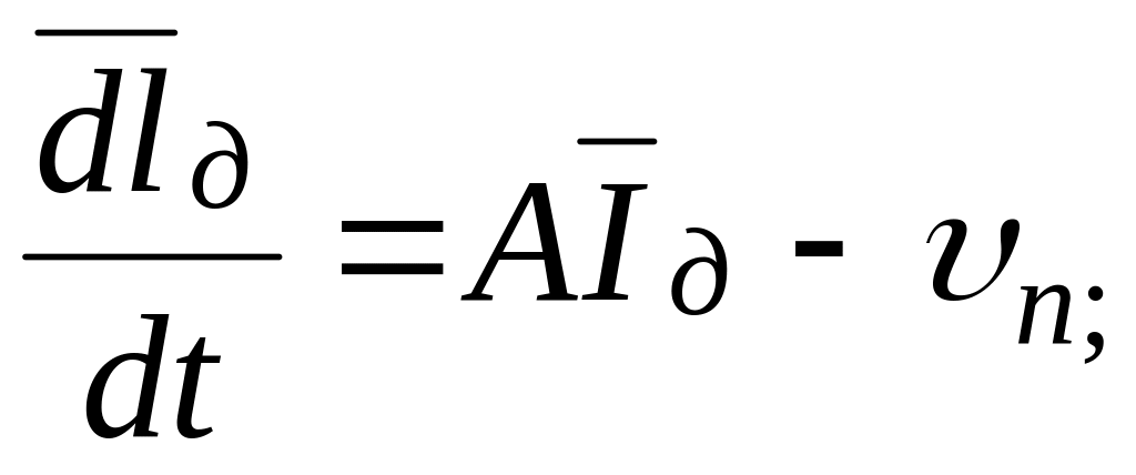 У формулах (1.95) — (1.98) b — коефіцієнт, що характеризує нахил статичної вольт-амперної характеристики джерела живлення; Rе — еквівалентний опір зварювального кола; Ес — напруженість електричного поля у стовпі дуги; L — індуктивність зварювального кола; Uа.к — сума анодного і катодного спадання напруги; τ1, τ2— сталі часу привода подавання електрода; С0, Сп — теплоємність металу при температурах Т0 і Тп; Т0, Тп — температури навколишнього середовища і плавлення металу електрода; γ0, γп — густина металу при температурах Т0 і Тп; rп — прихована теплота плавлення.
