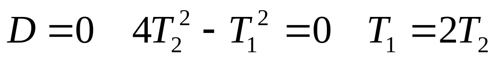 Це рівняння показує, що при подачі стрибкоподібного збурення на вхід коливальної ланки у разі D <0 його вихідна величина змінюватиметься по кривій подвійної кривизни і не матиме коливань (рисунок 1.14). Цей випадок має велике значення в практичних дослідженнях, оскільки по кривих такого типу відбувається розгін багатьох технологічних установок.