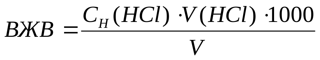 Карбонатная (временная) жесткость воды (ВЖВ) обусловлена присут-ствием в растворе бикарбонатов кальция и магния Ca(HCO3)2 и Mg(HCO3)2. Эти соли титруются соляной кислотой по схеме :