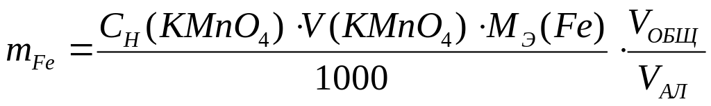 Рассчитывают титр перманганата по железу по формуле (7), а затем – количество железа в лезвии для каждой пробы по формуле: