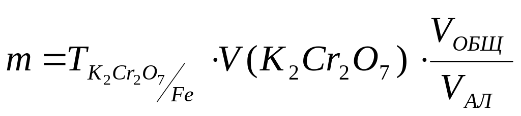 Рассчитывают титр дихромата калия по железу по формуле (7) и коли-чество железа в лезвии для каждой пробы: