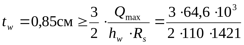 Так как = 1100мм - принимаем стенку из прокатной толстолистовой стали (ГОСТ 199-74*), толщиной = 9мм (ближайший размер по сортаменту к величине = 0,85см) .