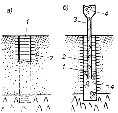 Оболочка представляет собой сваю кольцевого поперечного сечения диаметром более 80 см. Оболочки делают железобетонными и при больших диаметрах погружают вибропогружателями.