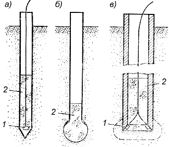 Рис.20. Схемы устройства уширений нижних концов свай и оболочек