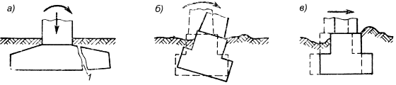 Рис.26. Схемы потери несущей способности фундаментов и их осадок