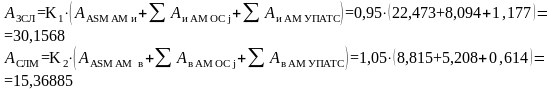 АУСС = К3 × ( N ЦС × y СП + N Т × y СП + y СПС ×å N ОС + y СПС ×å N УПАТС ) =