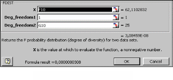 Для перевірки невипадковості високого значення R2 застосовується також стандартна функція FDIST. Для цього необхідно задати параметри функції таким чином: