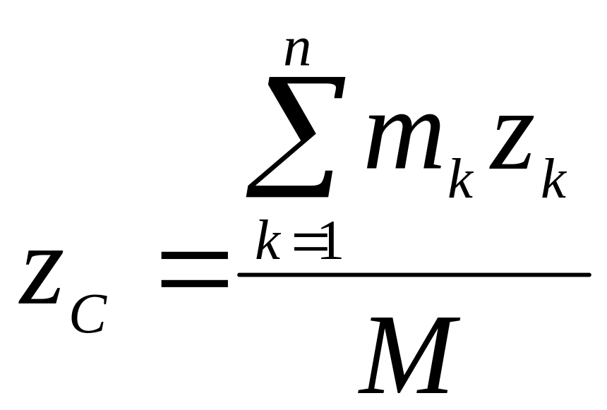 Проецируя (4.1) на декартовые оси координат получим формулы для координат центра масс