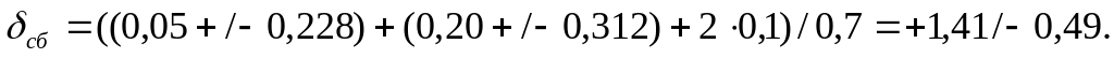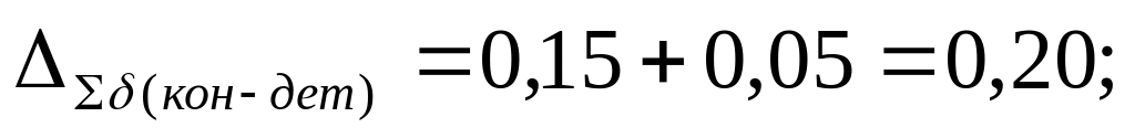 Подставим полученные значения погрешности приспособления δпр и погрешности увязки δкон(пр-дет) в формулу (1) определения точности сборки.