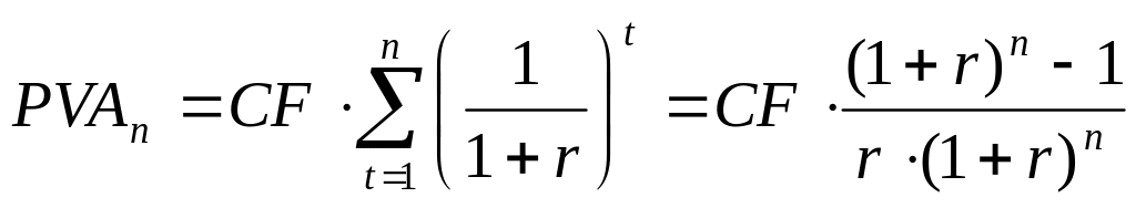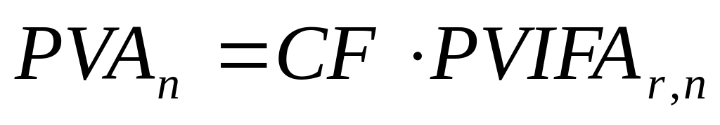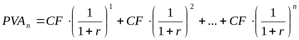 Теперішня вартість звичайного ануїтету (PVA – Present Value Annuities), розраховується наступним чином: