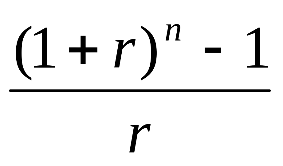 На кожен платіж нараховується складний відсоток, а степінь показує число періодів, на протязі яких здійснюється це нарахування. Оскільки перший платіж здійснюється в кінці 1 року, то відсотки будуть нараховані в роки з 2 до n, а степінь буде дорівнювати n–1, складний відсоток другого року нараховується з 3 року до n, або на протязі n–2 періодів і т.д. Останній платіж здійснюється в кінці терміну ануїтету, тому нарахування відсотків вже не здійснюється.