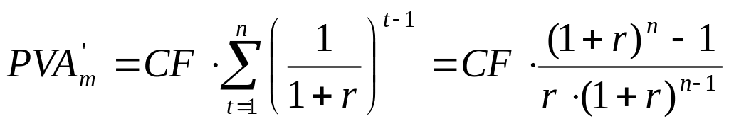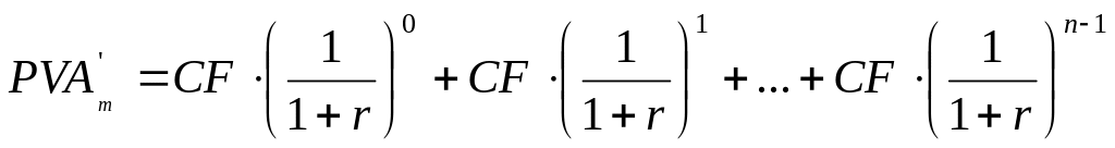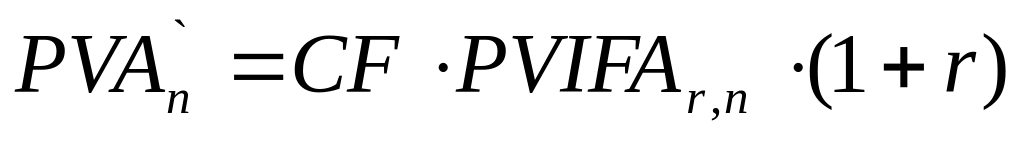Теперішня вартість прискореного ануїтету (PVA’ – Present Value Annuities), що триває n періодів, визначається за формулою: