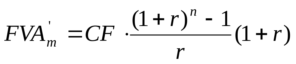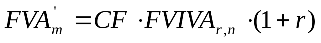 Майбутня вартість прискореного ануїтету (FVA’ – Future Value Annuities), що триває n періодів, визначається за формулою: