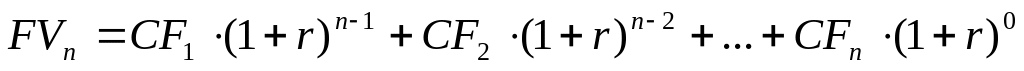 Визначення майбутньої вартості нерівномірних грошових потоків здійснюється за формулою: