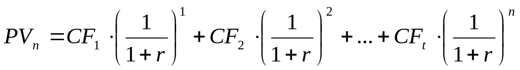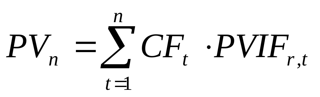 Теперішня вартість нерівномірних грошових потоків розраховується наступним чином: