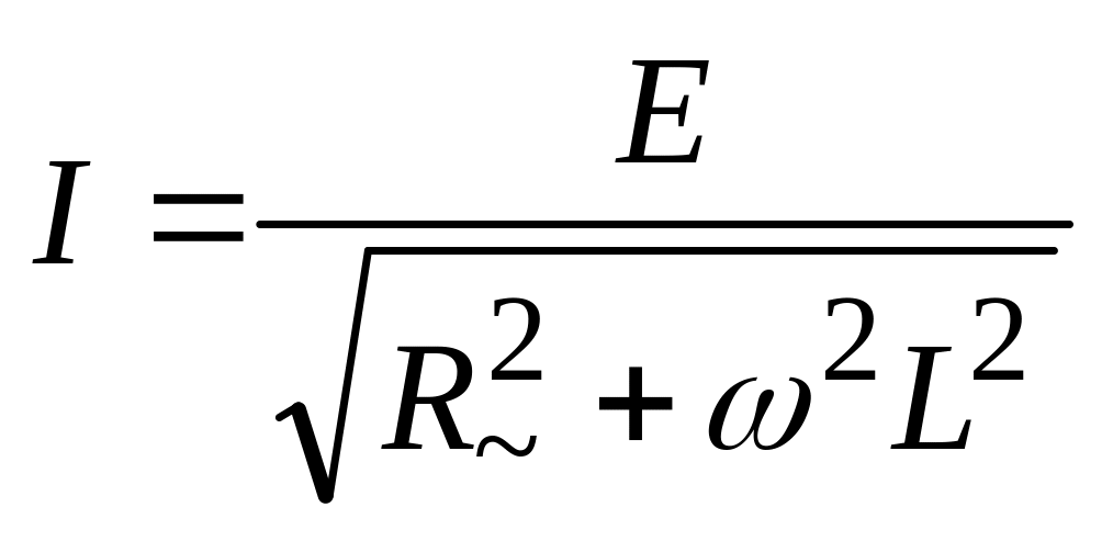 Согласно сделанным допущениям сопротивление цепи чисто индуктивное, сдвиг фаз между напряжением и током равен 900 .