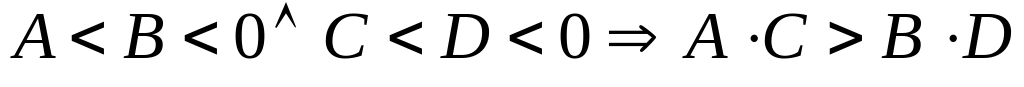 Свойство 9. Если почленно перемножить верные числовые неравенства одинакового смысла с отрицательными частями, изменив знак неравенства на противоположный, то получим верное числовое неравенство, то есть: