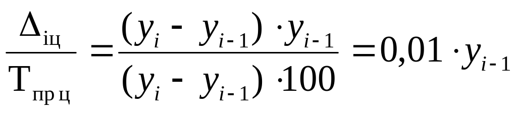 Абсолютное значение одного процента прироста Аi. Этот показатель рассчитывают как отношение абсолютного прироста к темпу прироста (в процентах) за тот же период времени.