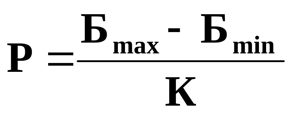Шаг интервала (шкалы) определяется по формуле: