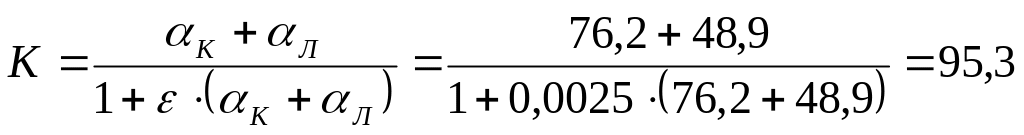 где коэффициент теплоотдачи излучением и коэффициент теплоотдачи конвекцией.