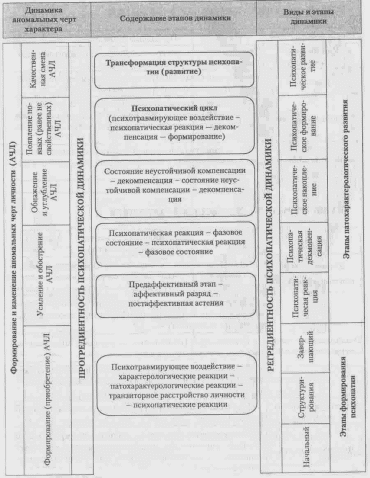и динамике краевой психопатии (по В.В. Нечипоренко, 1989)
