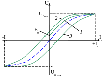 После этого строят расчетную характеристику холостого хода, проводя в петле гистерезиса среднюю линию -------.