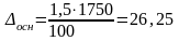 Определим абсолютную погрешность Δ измерения расхода природного газа (Q = 1750 ±250 м3/ч). В качестве датчика используем вихревой расходомер ИРВИС-РС4-Пп с основной допускаемой погрешности δ = 1,5%.