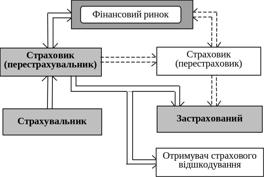 Страхові відносини характеризуються рухом грошових потоків, зображених на схемі 6.1 (пунктирними лініями зображено відносини перестрахування):