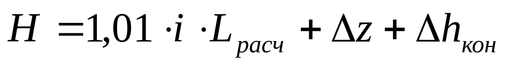 Δhкон - величина подпора, необходимого в конечной точке трассы (примем 30 м);
