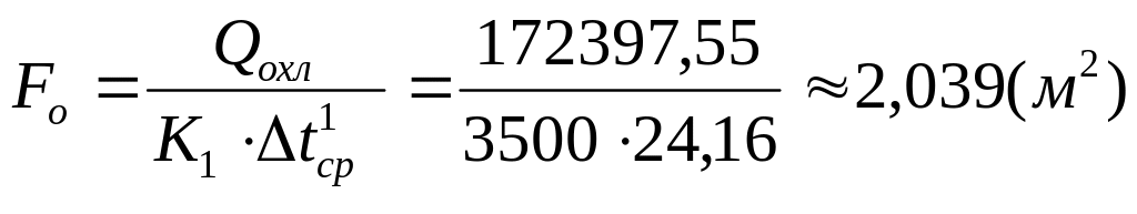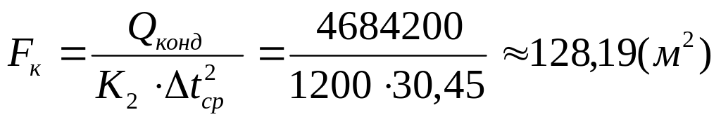 Площадь для зоны конденсации рассчитаем по формуле: