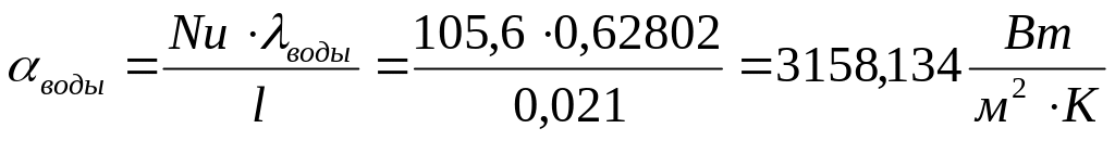 – коэффициент теплоотдачи для воды