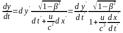 є проекціями вектора швидкості точки відносно систем K і на відповідні координатні осі. Використаємо перетворення Лоренца