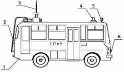 1 – автобус ПАЗ-3205; 2 – лестница; 3 – антенна; 4 – система сигнальная
